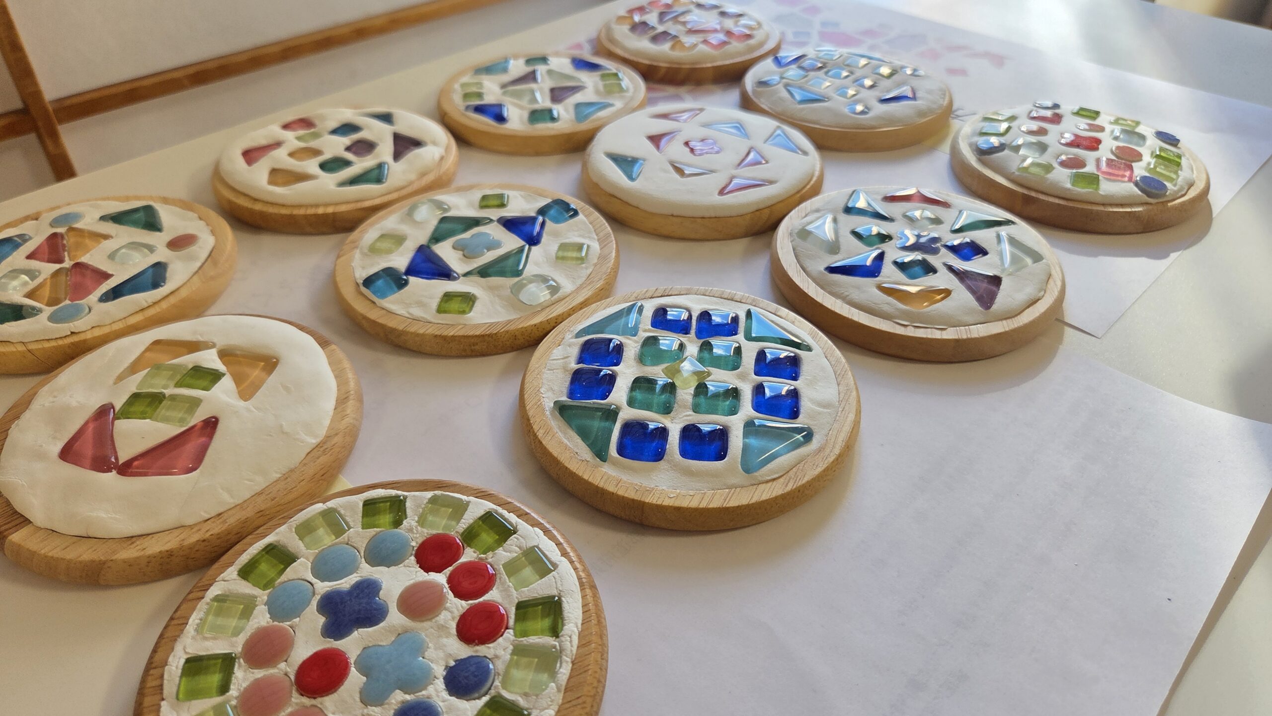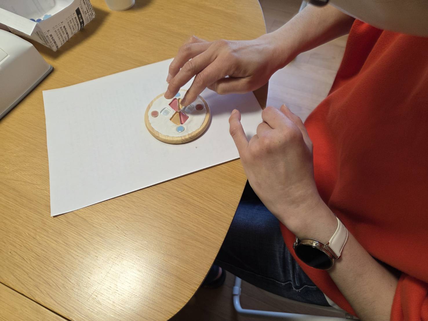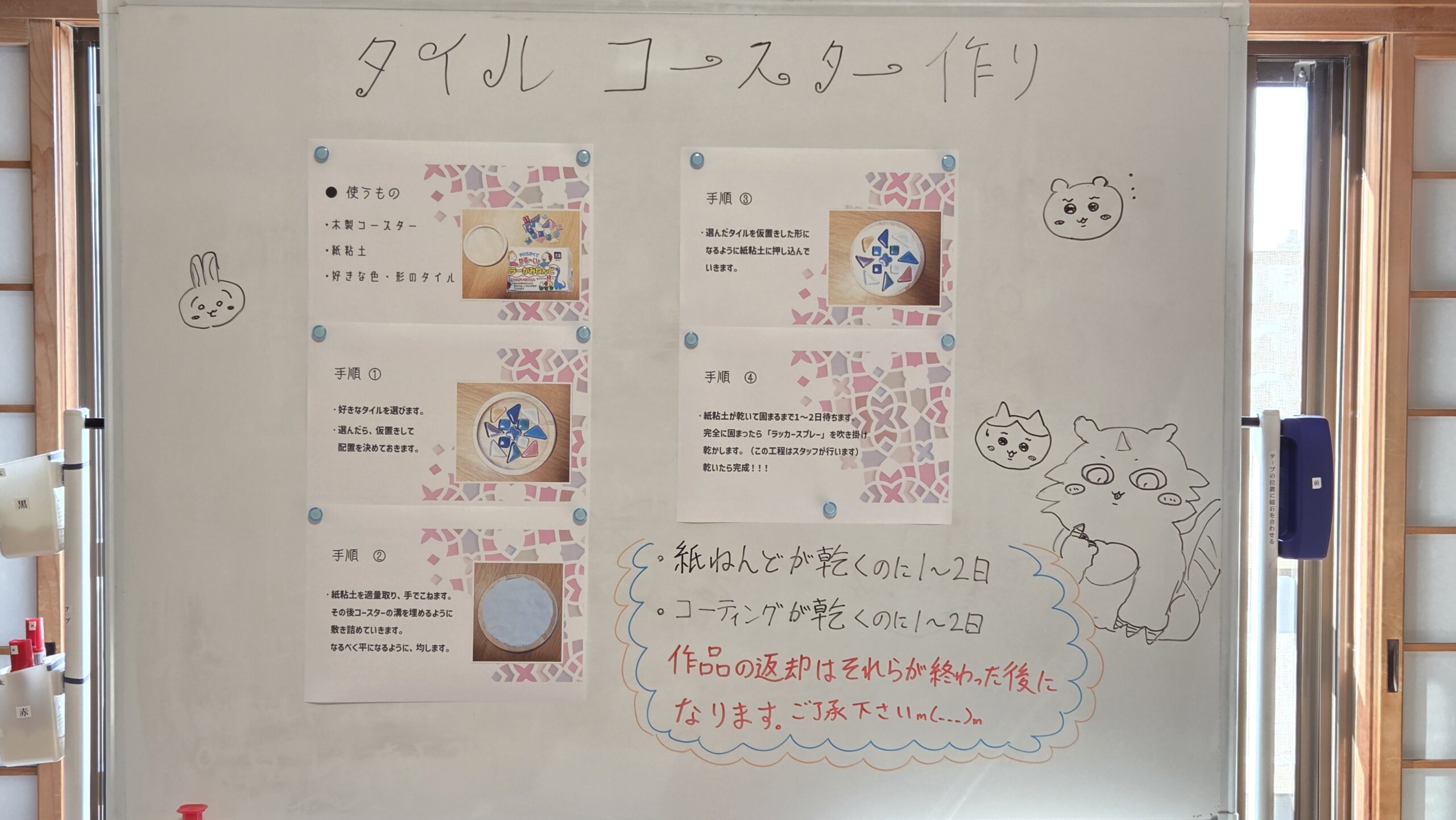さて、そんな感傷はさておきアクシエでは「タイルコースター作り」を行いました!