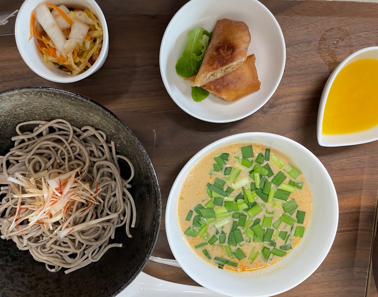 そばをつけ麺風にしてみました!白ゴマが濃厚で秋にぴったりの一品です🌟🌟🌟