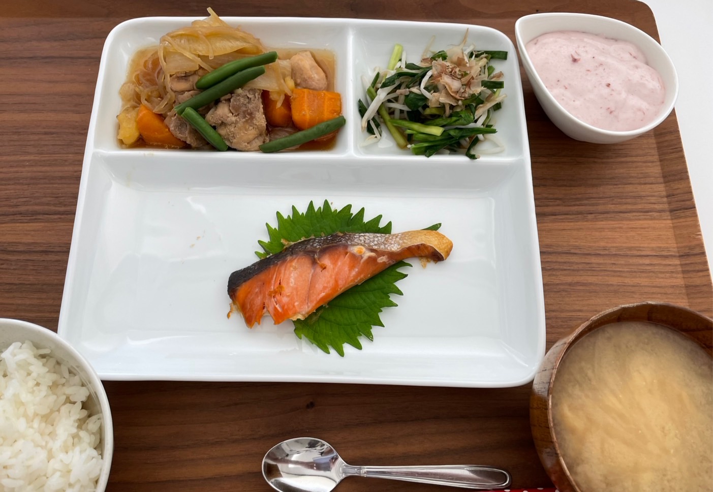 こちらはTHE和食の焼魚の鮭と肉じゃが🥔🥕🐟