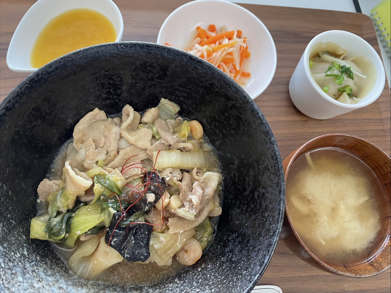 最後に野菜とシーフードたっぷりの中華丼!🦐🥬