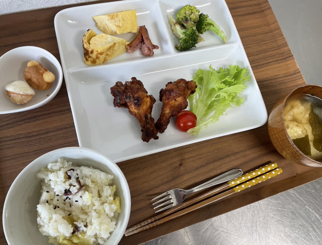 ラインナップは、手羽元の某フライドチキン風、みんな大好き卵焼き、秋に最高!さつまいもの炊き込