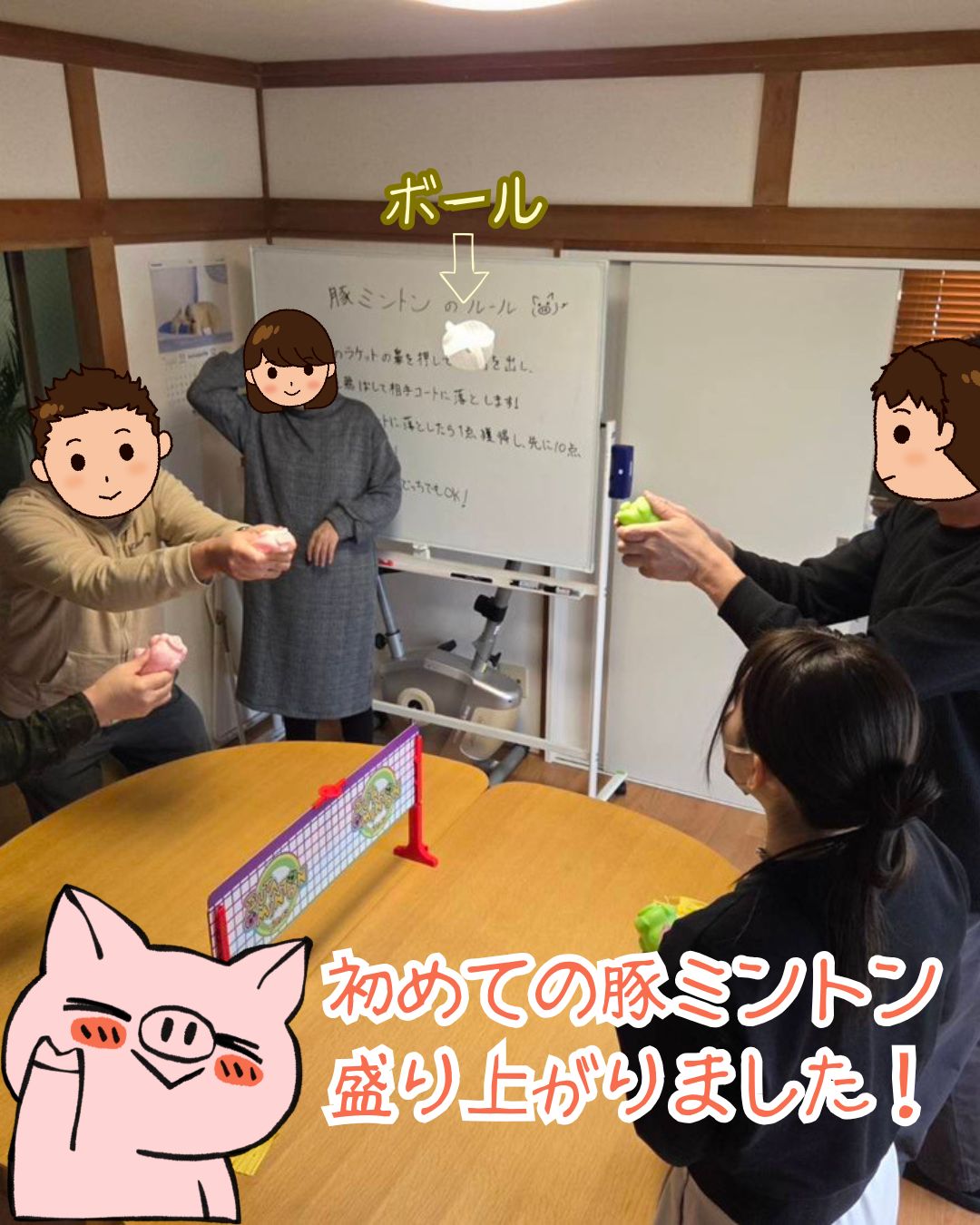 さて、今回の活動は「ブタミントン」を行いました!🐷🏸