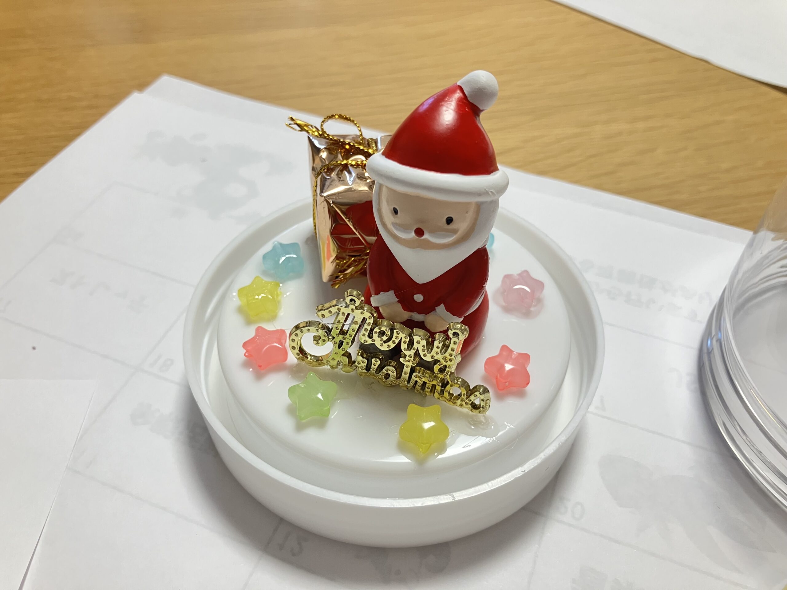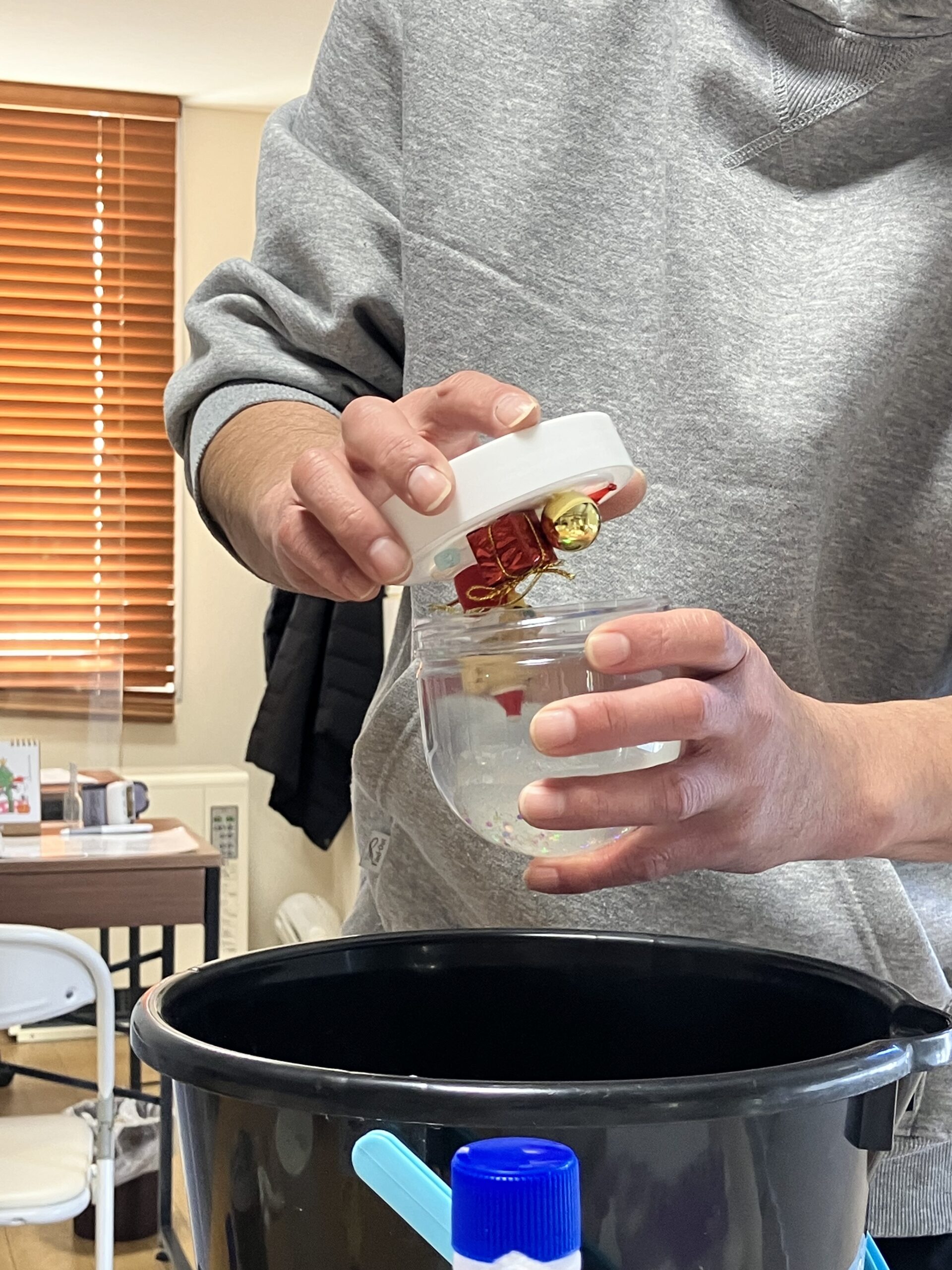 さて今回の活動は、この季節にピッタリなスノードーム作りを行いました。