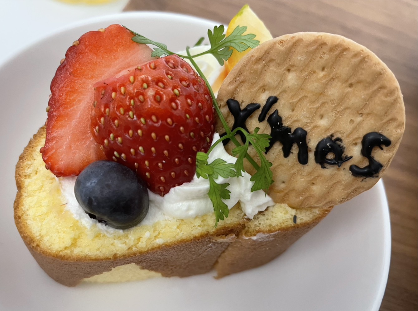 デザートにはロールケーキにフルーツをデコレーション🎵