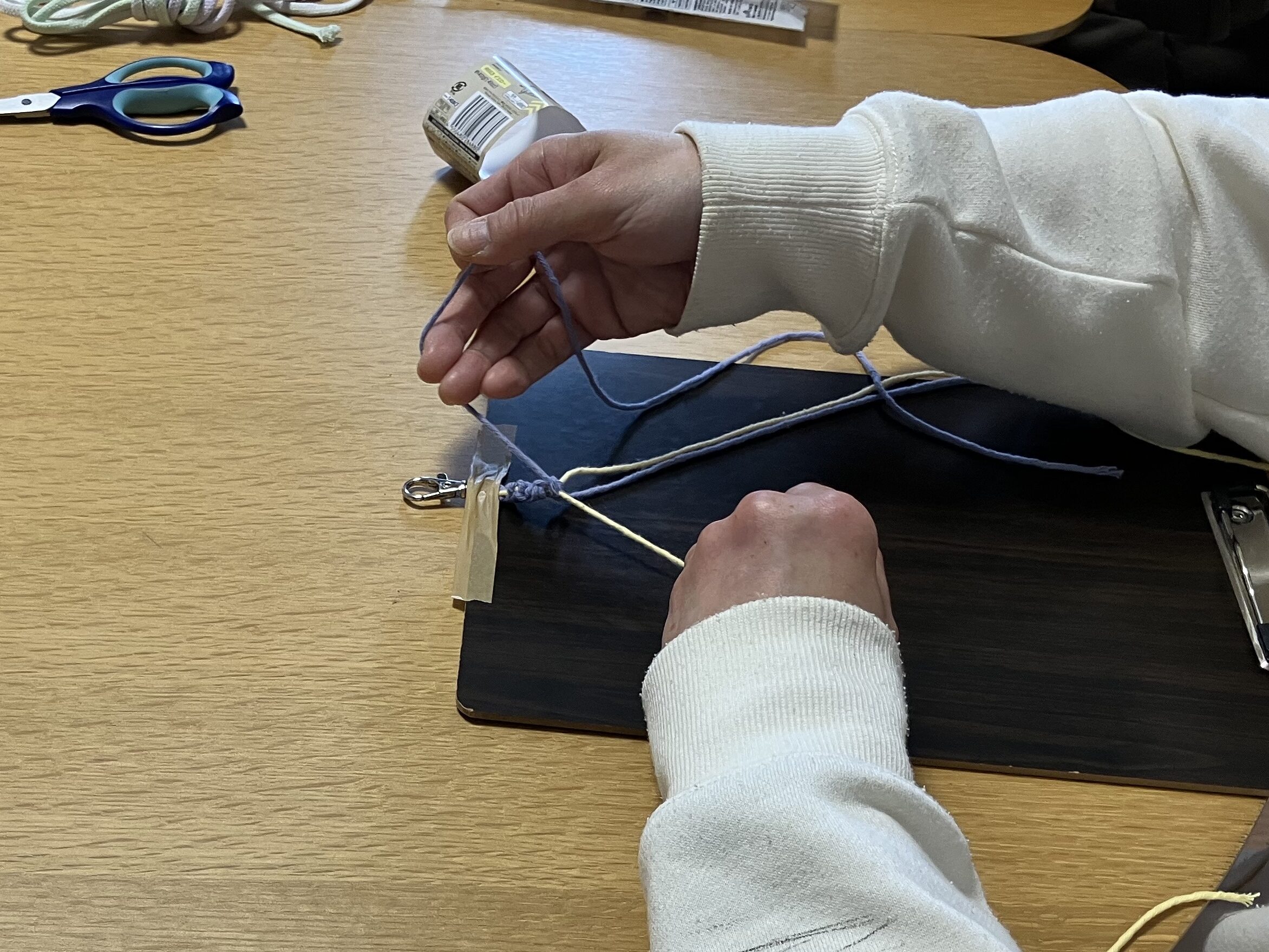 さて、アクシエでは『マクラメキーホルダー作り』を行いました!